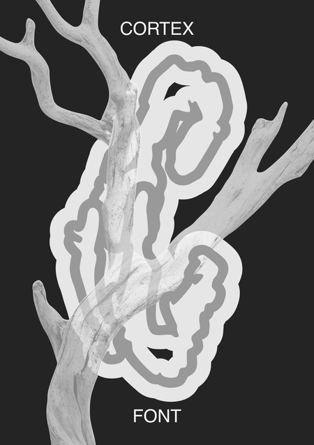 Шрифт Cortex — это модульный акцидентный шрифт, основанный на формах коры и передающий сложный рисунок текстуры дерева