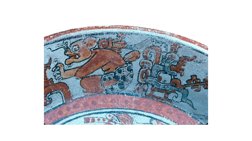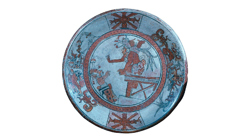 Полихромная тарелка с изображением танцующего Бога Маиса, ок. 6–9 вв. н. э.