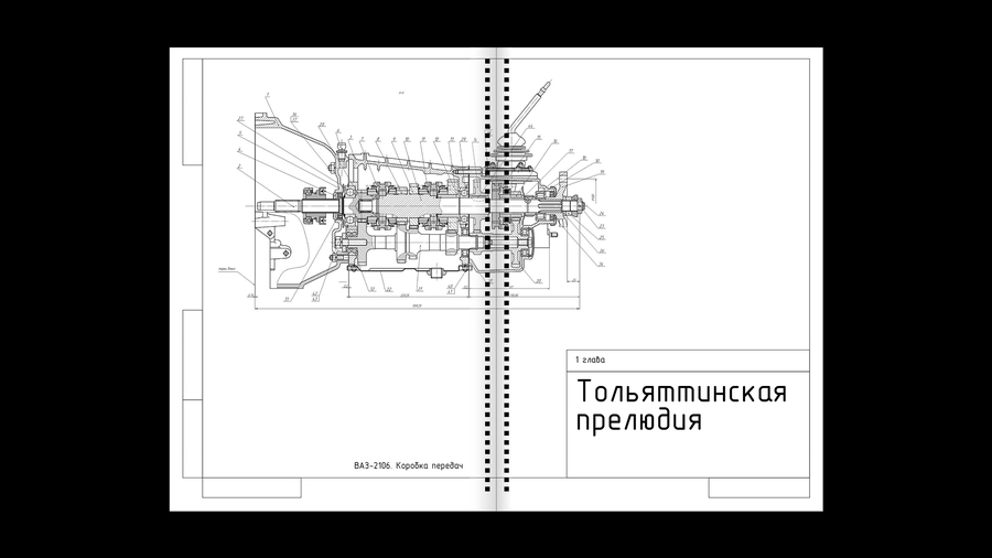 Сложноструктурная книга посвящена истории завода АвтоВАЗ в Тольятти.