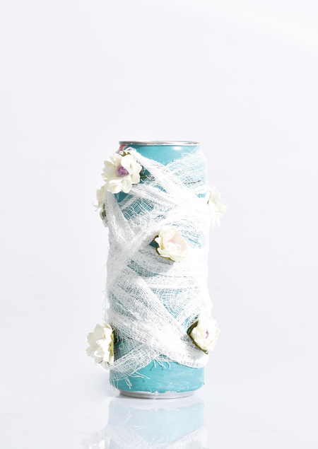 Данный кастом банки выполнен с использованием бинтов и искусственных цветов.