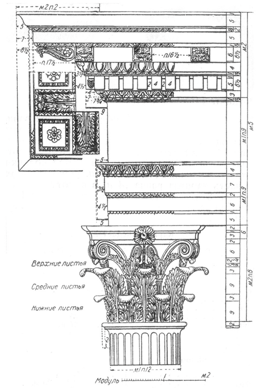 Трактат «Десять книг об архитектуре» Витрувия, I в. н. э. –– систематизация древнегреческих принципов, описание связи пропорций между ордерами и человеческим телом.