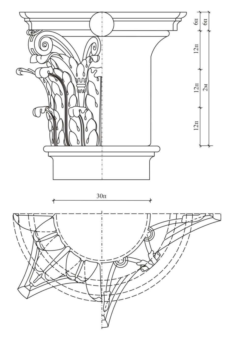 В капители используются листья аканта, являющиеся символами жизни и возрождения.
