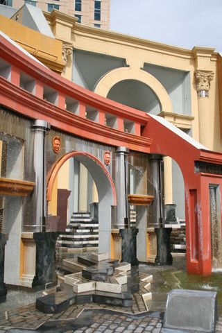 Пьяцца д’Италия Чарльза Мура в Новом Орлеане (1978) — хрестоматийный пример: это постмодернистское общественное пространство собрало эклектичную коллекцию римско-итальянских архитектурных фрагментов, окрашенных и подсвеченных неоном. Колонны, арки и экседры там преднамеренно расставлены фрагментарно и с нарушенной масштабностью, превращая площадь в театральную декорацию.