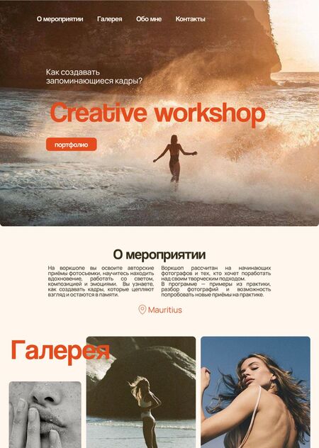 Проект представляет собой интерфейс для промо-сайта креативного воркшопа по фотографии.