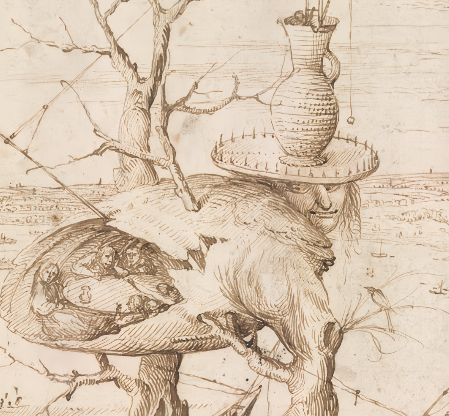 Иероним Босх, «Сад земных наслаждений», ок. 1500–1515 гг. — фрагмент картины и подмалевка