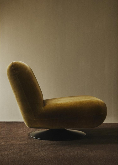 Металлическая настольная лампа и бархатное, вращающееся, акцентное кресло из коллекции Zara Home