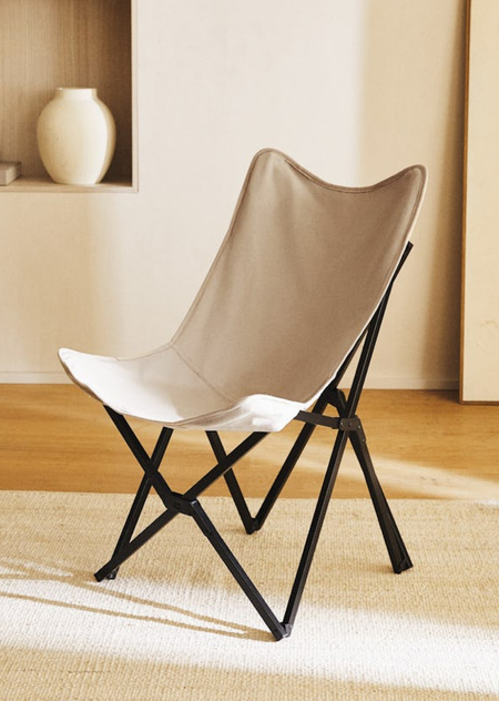 Пододеяльник с жёлтым цветочным принтом и складной стул из алюминия и парусины из Zara Home Autumn–Winter 2022