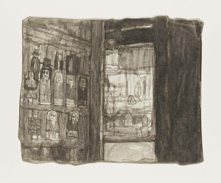 Он самостоятельно делал «папки» из обрезков картонных коробок и аккуратно складывал туда свои работы. Каждая такая папка имела внутреннюю логику: одни группы работ объединялись по тематике, другие — по времени создания или по типу изображённого пространства (точно не известно).