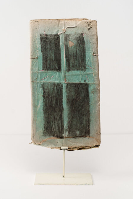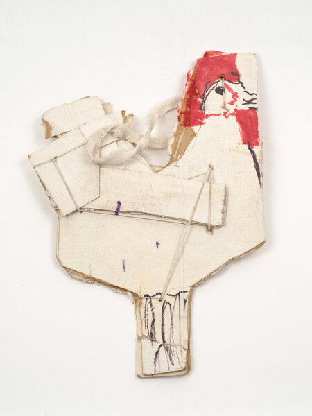 Не менее разнообразными были и сами основы для его работ. Касл рисовал на картонных коробках, обрывках бумаги, журналов, на старых черновиках, на внутренних слоях упаковок. Иногда он прошивал эти листы нитями, создавая устойчивые книжные блоки; иногда соединял их в сложные объёмные конструкции. Его искусство выросло из культуры нехватки материалов, но именно эта нехватка сформировала его визуальное мышление: любое найденное основание становилось частью произведения, а любая текстура — частью набора художественных инструментов.