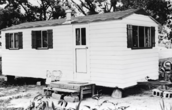 слева: трейлер-дом-мастерская Джеймса Касла; справа: Джеймс Касл, (Трейлер), ок. 1950–1977 гг.
