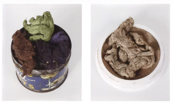 Отдельного внимания заслуживает его работа с цветом. Касл буквально «добывал» цвет из окружающих его бытовых предметов: окрашенных салфеток, упаковок, цветной бумаги. Он вырезал или соскабливал пигмент, растворял цвет или растирал его так, чтобы перенести на поверхность. Современные исследователи его творчества реконструировали этот процесс.