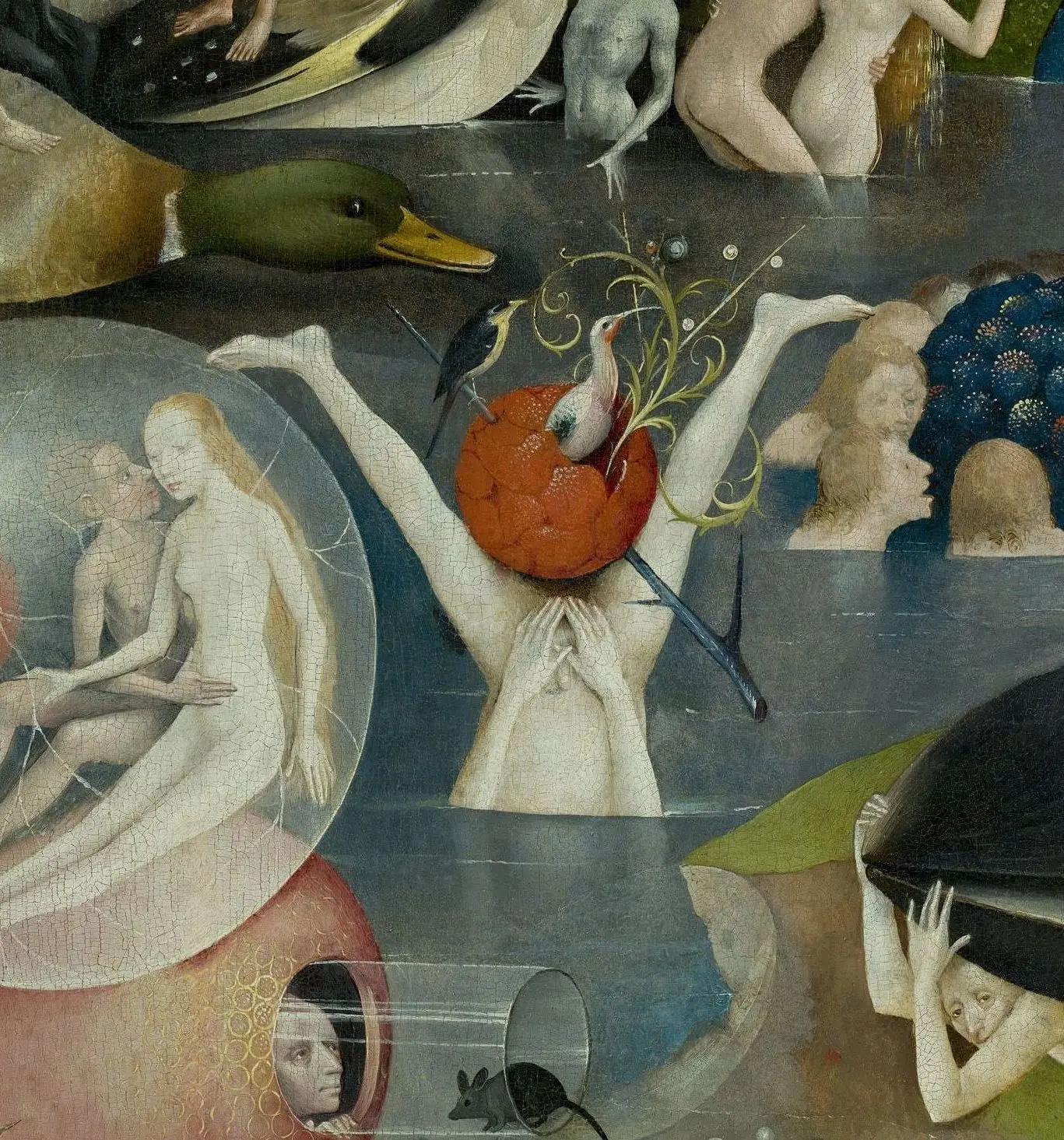 — Анализ «Сада земных наслаждений» ㅤㅤ1. Фонтан жизни ㅤㅤ2. Утки и лебеди ㅤㅤ3. Полумесяц ㅤㅤ4. Обнаженные ㅤㅤ5. Фонтан вечной молодости ㅤㅤ6. Птицеголовый монстр ㅤㅤ7. Ягодицы