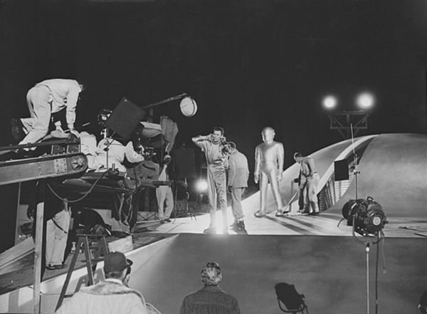 Космический корабль Клаату описывается в сценарии как «гигантская тарелка», приближающаяся с невероятной скоростью. Сцены приближения и посадки (например, на лужайку) создавались с помощью миниатюр и моделей.