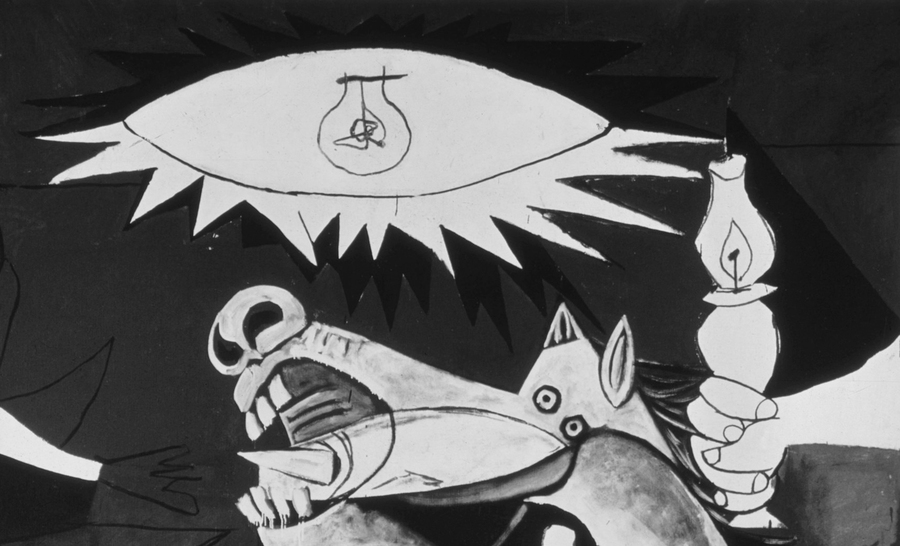 Пикассо в своей работе «Тень», например, демонстрирует процесс написания картины: на заднем плане позирует модель, а на переднем плане изображен сам художник перед мольбертом, но только в виде тени. Он как бы пытается изобразить живописца (возможно, самого себя) со стороны, но, не имея такой возможности, показывает зрителю лишь придуманный образ, другое «я», теряющее детализацию и значимость на фоне остальной композиции, но при этом выступающее громоздким, неконтролируемым и неизбежным пятном в самом ее центре.
