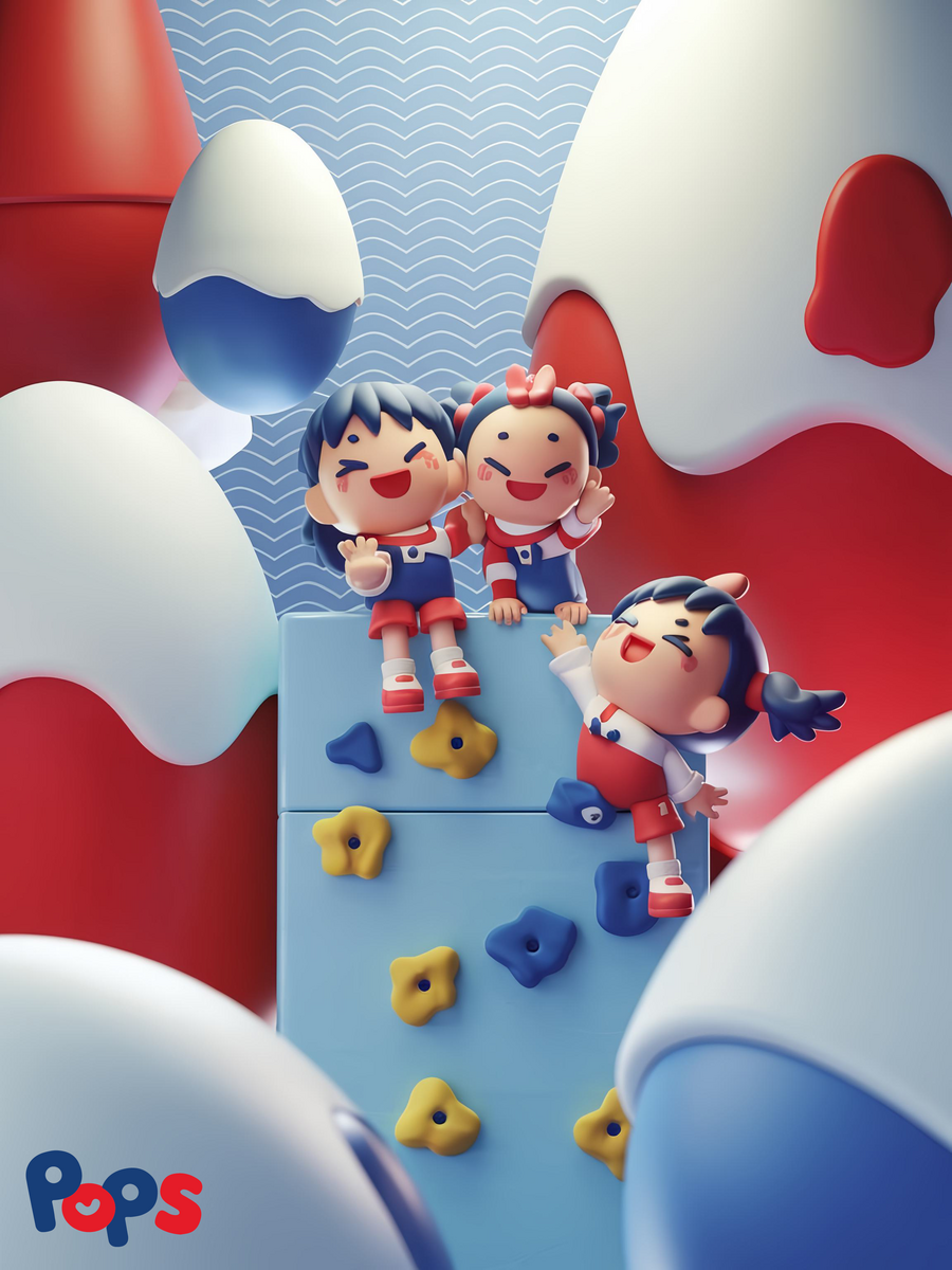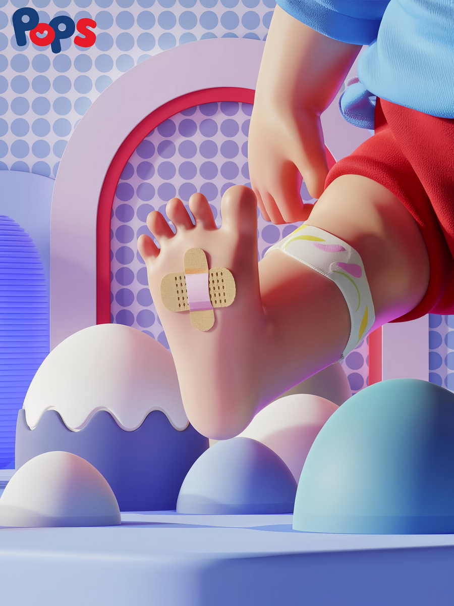 Ideogram: Lively and colorful poster showing an adorable baby’s foot, with a band-aid attached. The baby is dressed in blue and red clothes. The background is a unique combination of a simple pattern and eggs combined with simple 3D graphics and soft lighting in red, blue and white tones. The overall design showcases a Japanese aesthetic inspired by Nintendo.