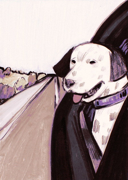 Мы с семьёй часто путешествуем с собакой в машине. В зине я изобразила моменты, из которых состоит настоящее семейное путешествие: смех, остановки, новые пейзажи, места и счастливая собака.