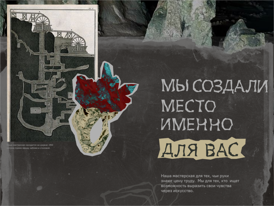 Наш проект — это уникальный творческий коворкинг в сердце гоблинских шахт, преобразующий место тяжелого труда в пространство для самовыражения и создания ювелирных украшений.
