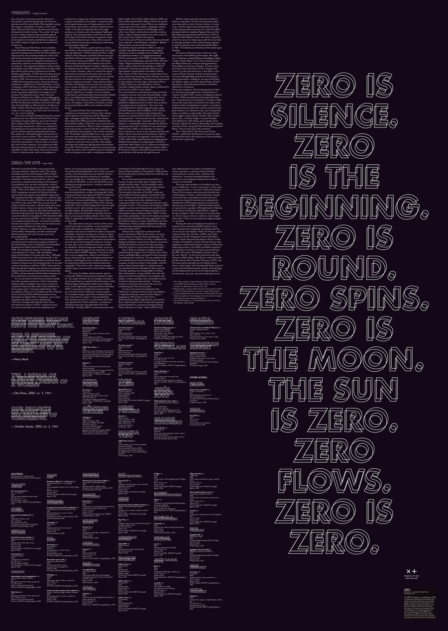 Брошюра выставки «ZERO», 2019 г. MONA (Museum of Old and New Art), Тасмания, Австралия