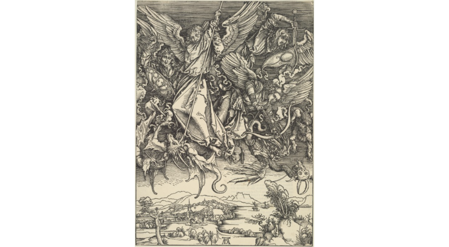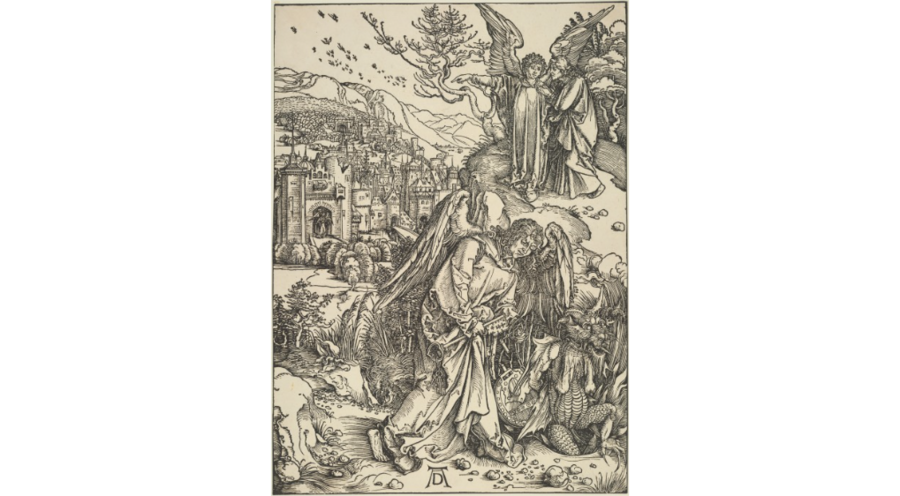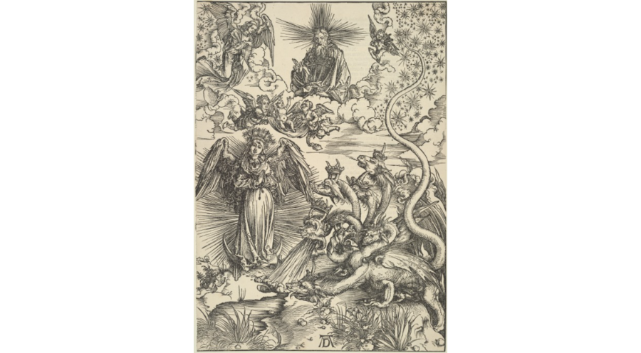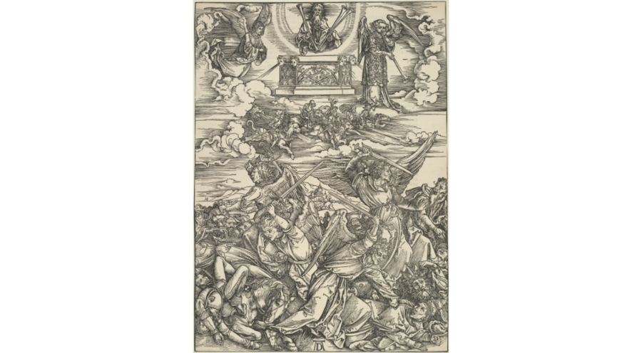 Серия из 15 листов, основанная на тексте «Откровения Иоанна Богослова». Дюрер начинает работать над ней за два года до того, когда в Европе предрекали конец света. Художник, создавая этот цикл выступает не только в качестве иллюстратора: он также создает шрифты, совмещает гравюры и текст. Серия стала одной из самых знаковых и влиятельных в творчестве Дюрера.