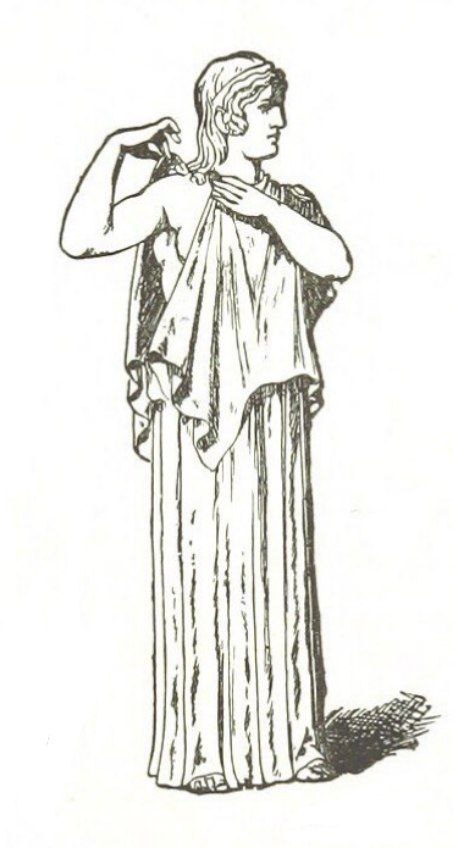 Ионийская одежда, частично вытеснившая, как уже было сказано, старинную дорийскую, по свидетельству Геродота, была введена в Афинах в правление Писистрата (560 — 527 гг. до н. э.). Ионийский хитон был первой закрытой одеждой, которую реки мог носить без заколок.