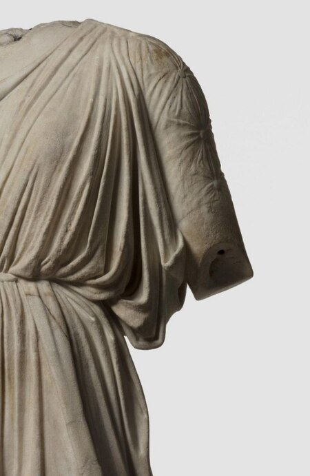 Кроме того, в Древней Греции, где физическое совершенство ценилось с детства, сформировался культ обнаженного тела. Это отразилось и на одежде классического периода: она была простой, однотонной (чаще белой или натуральных оттенков), из шерсти и льна. Основным предметом гардероба был безрукавный хитон — прямоугольный кусок ткани, сложенный и скрепленный на плечах фибулами. Для удобства движений, особенно во время занятий спортом и военных учений, одну из фибул могли отстегивать.
