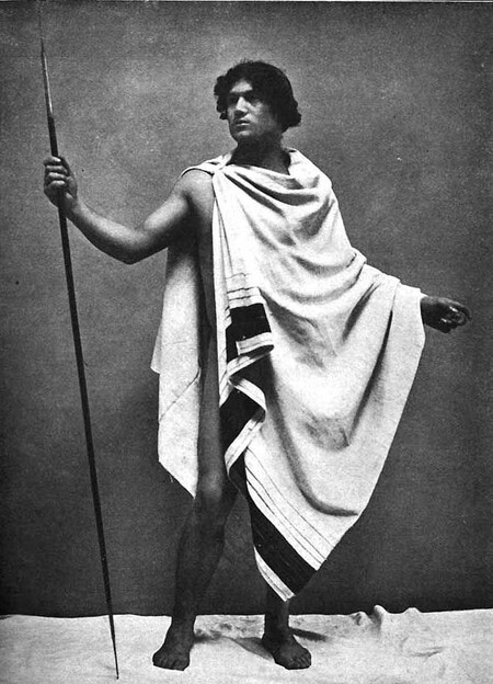 «Мужская рубашка — хитон — представляла собой кусок материи, сложенный пополам, с прорезом на сгибе для руки, и сшитый на противоположной стороне — с прорезом для другой руки. Наверху хитон схватывался наплечной пряжкой, на талии стягивался поясом. Мужской плащ — гиматий — запахивался через левое плечо на спину и пропускался справа под мышкой, чтобы сделать свободным движение правой руки; свободный конец закреплялся на левом плече.» (Андреева Р.П., «Энциклопедия моды», 1997 г.)