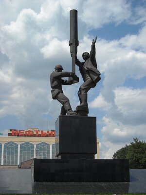 Памятник «Нефтяники» и Дворец культуры «Нефтьче»