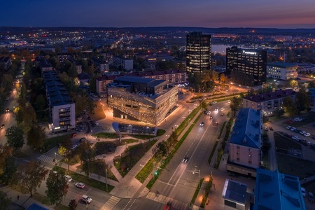 Вид на офис «Татнефть» с городского озера, г. Альметьевск