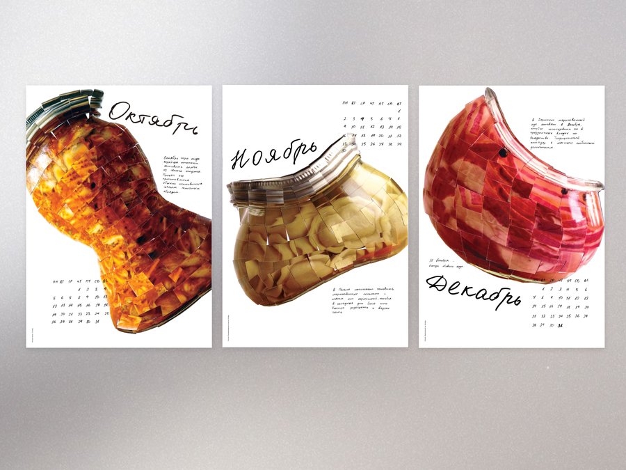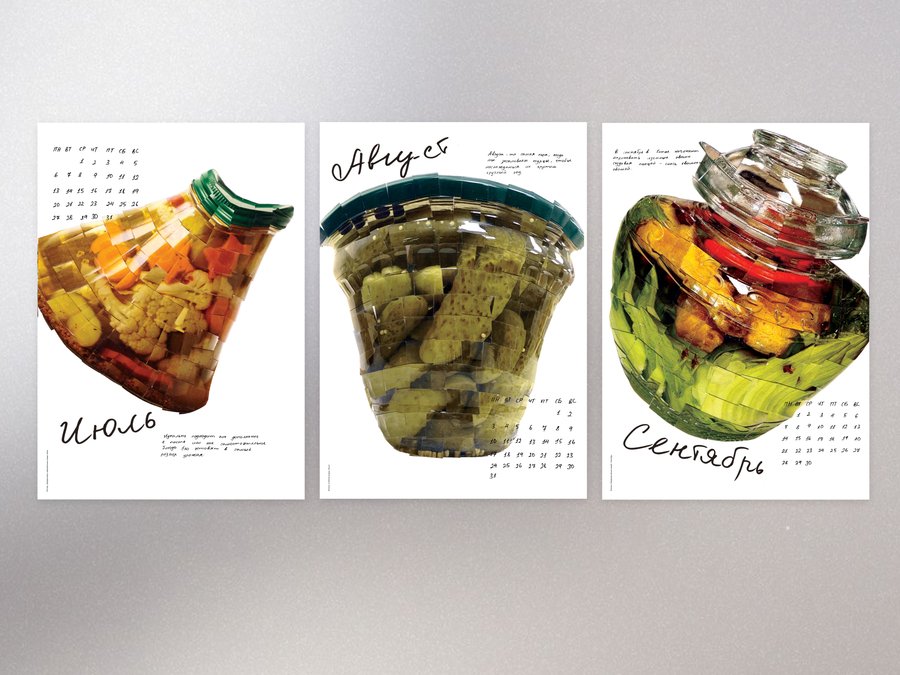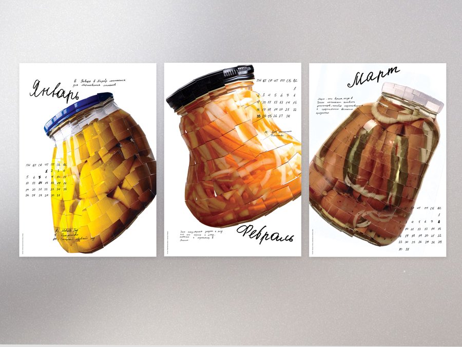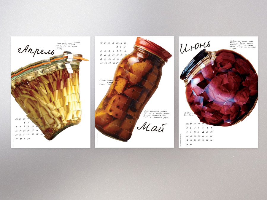 Идея заключается в том, чтобы показать, какая банка с каким продуктом закручивается в конкретный месяц и в какой точке мира. Каждый разворот календаря будет посвящен одному продукту, который маринуется или консервируется в определенное время года в разных странах.