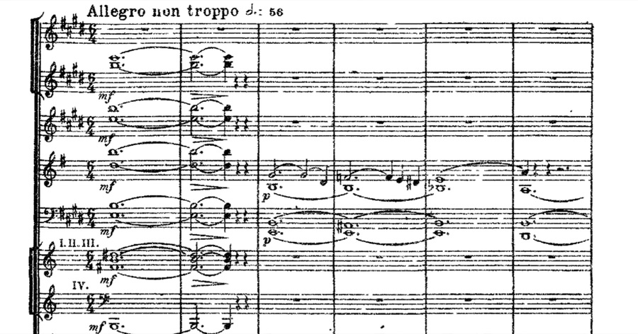 Гармония нередко содержит аккорды с добавочными тонами, полутоновыми напряжениями и обратными движениями, создавая диссонансы и раздвоение звука. Такие гармонические структуры вызывают чувство неустойчивости и внутреннего конфликта, что хорошо передает образ духовного беспокойства, борьбы или страха. В некоторых случаях используются эффекты кластеров — плотных групп звуков, которые вызывают напряженное и мрачное впечатление.