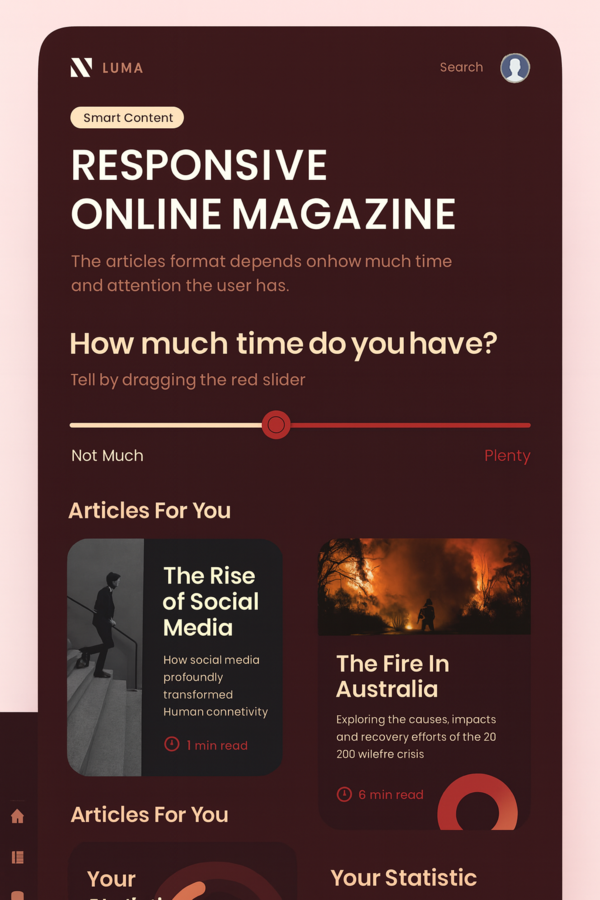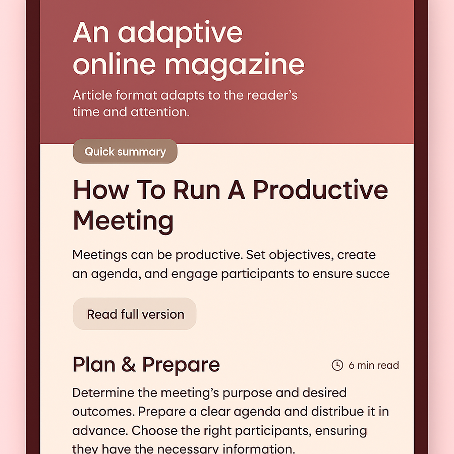 Idea: a magazine that detects how much time and attention the reader has and adjusts the article format.