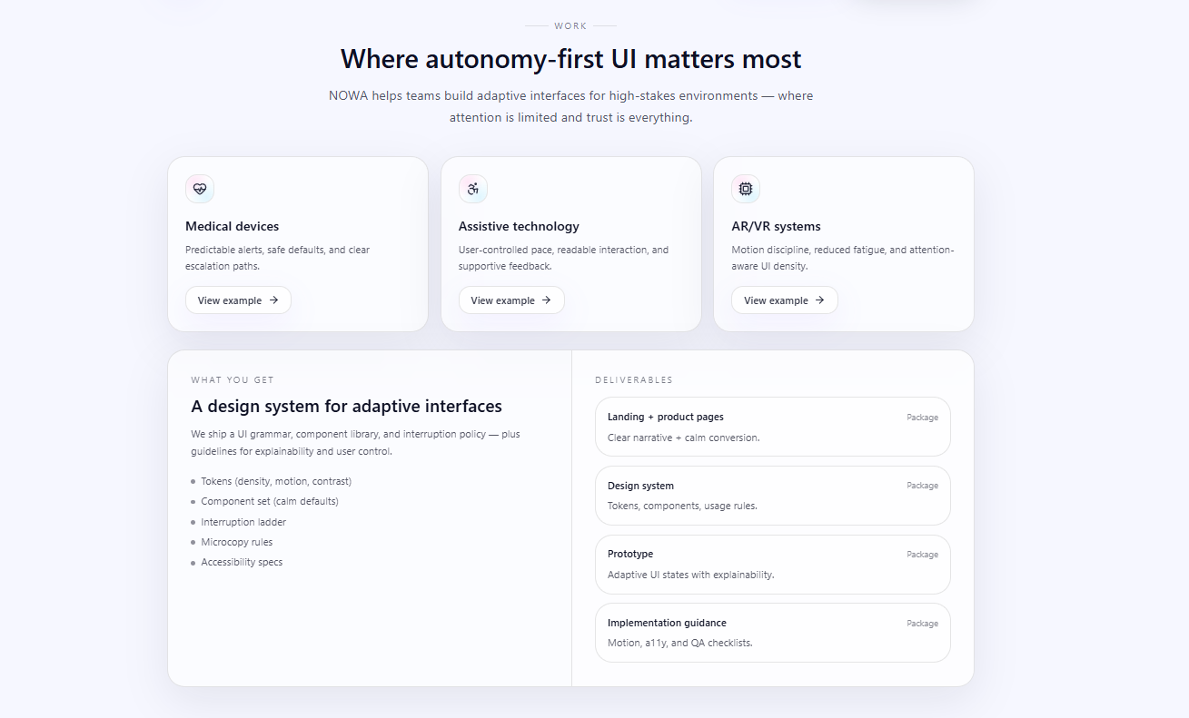 User Experience: For the general audience, NOWA communicates through experience rather than explanation: • fewer interruptions, • calmer transitions, • predictable behavior. Meaning is formed through use, not instruction.