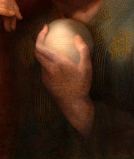 Религиозный сюжет трагического раскаяния. Мария со смиренным взглядом держит чашу, из которой, по преданию, омывает ноги Христа миром, после чего вытирает их своими волосами.