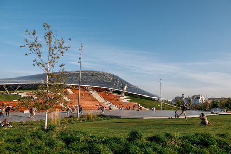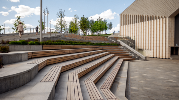 Показателен и пример открытых городских парков, например, московское «Зарядье», где ландшафтные амфитеатры воспроизводят принцип античных театров как пространств коллективного созерцания. Они соединяют природную среду, отдых, лекции и представления.