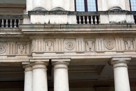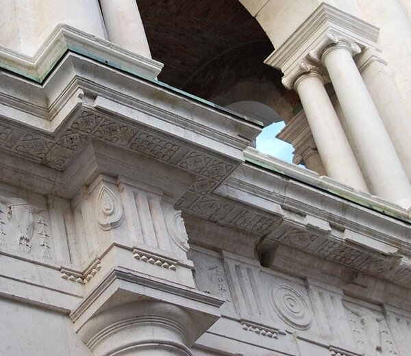 Особое место занимает использование античных ордеров. Колонны, капители, фронтоны и антаблементы у Палладио не являются декоративными вставками. Они становятся основой композиции и определяют характер здания. Храмовый фронтон может появиться на частном доме, а колоннада на сельской вилле. Такое перенесение сакральных форм в бытовую архитектуру не выглядит чужеродным, потому что античные элементы включены в структуру здания и подчинены его функциям.