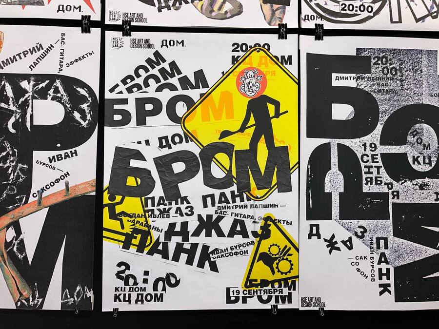 19 сентября 2025 года в КЦ «Дом» состоялся концерт джаз-панк группы «БРОМ», для которой мы подготовили тематические плакаты