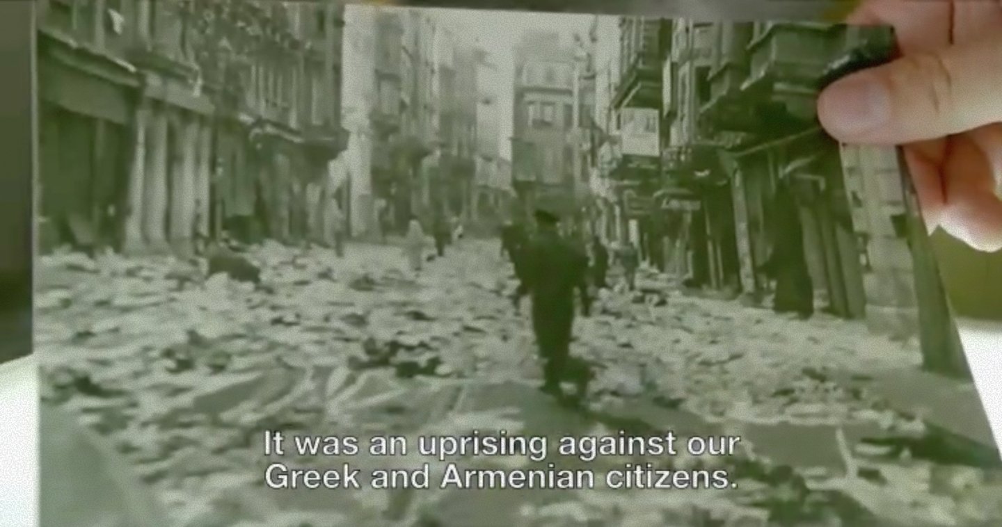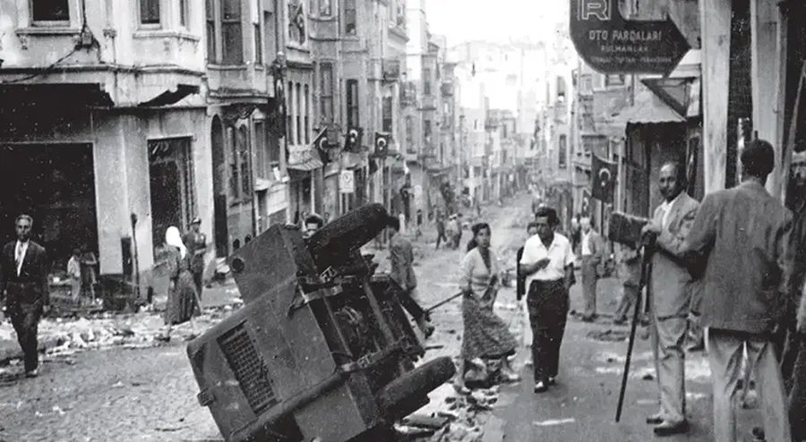 «Он рассказал мне о ночи 6 сентября 1955 года, когда в момент политической напряженности между Турцией и Грецией, вызванной событиями на Кипре, банды, мобилизованные турецким правительством, бродили по городу, грабя магазины, принадлежащие грекам, армянам и евреям, оскверняли церкви и синагоги и превратили улицу Истикляль в руины. Центральная улица, проходящая через Бейоглу, мимо дома Ары, вела прям в зону боевых действий»