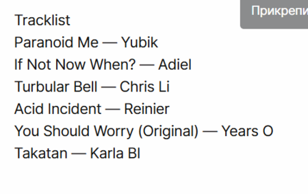 Пару месяцев назад я впервые познакомилась с электронной музыкой. Раньше слушала в основном рок и металл, поэтому она показалась совершенно другой и даже немного чужой: монотонная, с пульсирующими битами и слоями, и постепенно затягивающая в своё пространство. Направлений и авторов столько, что легко потеряться. Но цель была не стать экспертом, а почувствовать музыку по‑своему. Я хотела, чтобы сет не давил и не отвлекал, а спокойно вёл, гипнотизировал, создавая атмосферу лёгкой меланхолии и транса. Я искала треки с необычными звуками, щелчками и эффектами, которые появляются неожиданно, делая сет живым и объёмным, чтобы даже после нескольких прослушиваний открывались новые детали.