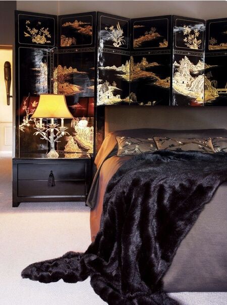 «Самый простой способ впустить впечатляющую атмосферу шинуазри в интерьер — купить китайскую ширму. Деревянные перегородки с лакированной поверхностью, расписанные китайскими узорами, выглядят ярко и эффектно в любой комнате. В гостиной, например, китайская ширма может зонировать пространство, в спальне выступать в роли изголовья кровати.