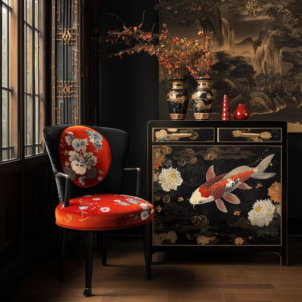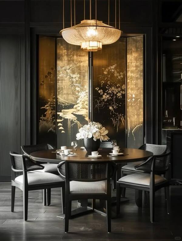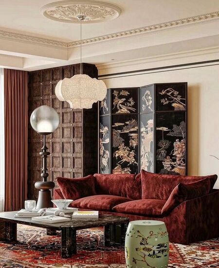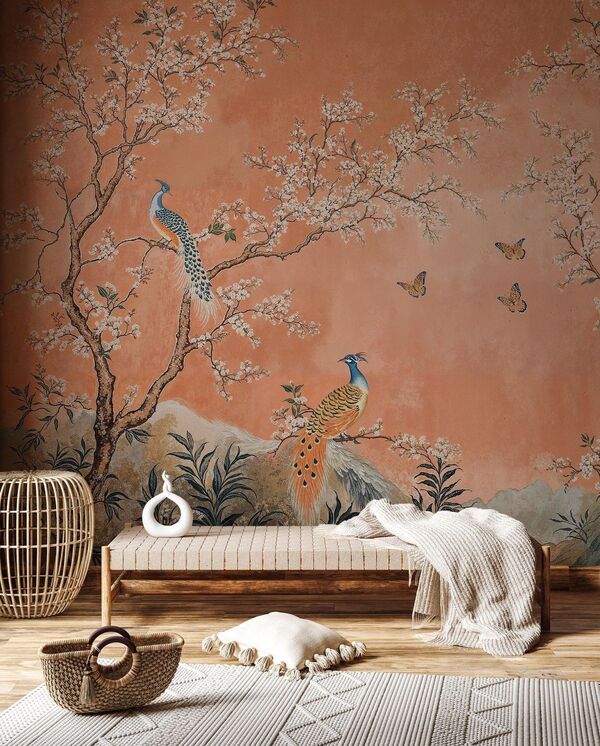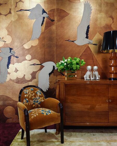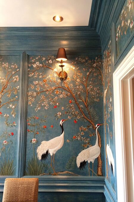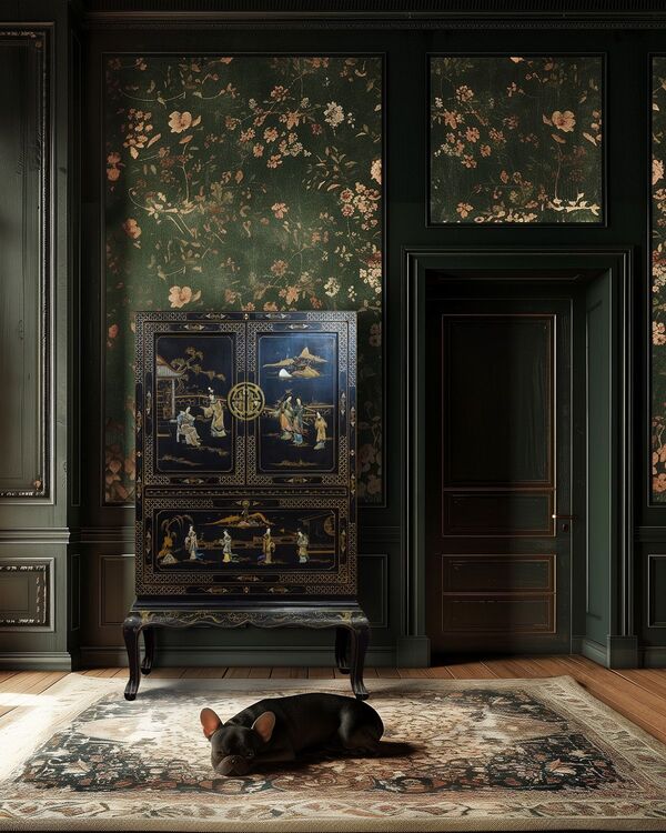 Шинуазри в современном интерьере используется не как тотальная стилизация помещения, а скорее как акцентная зона. Например, стена‑панно, угол отдыха, столовая группа. Шинуазри встраивается в уже существующую функциональную группу.