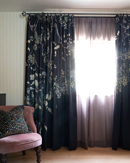 Минималистичная мебель в сочетании с таким ярким текстилем создадут отличный контраст. Можно использовать какой-то один элемент с мотивами шинуазри (шторы или декоративные подушки на диване), а остальной текстиль подбирать по фактуре и цвету, но без сюжета.