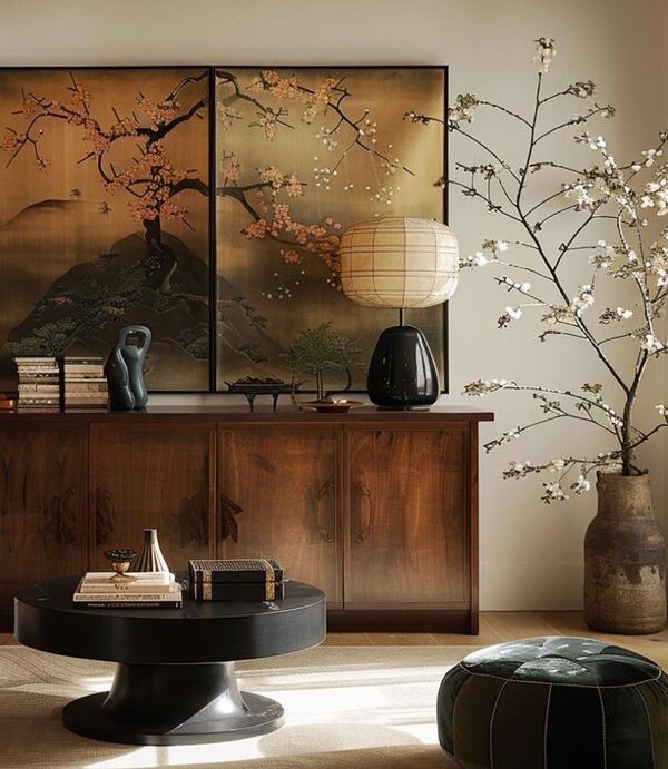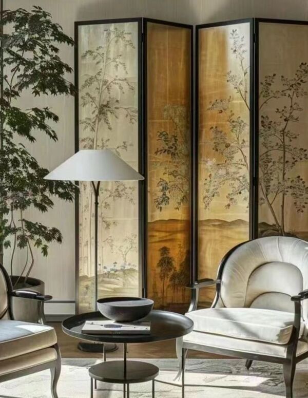 Для удачного дизайна лучше всего использовать ограниченную палитру и мотивы: выбрать 2-3 основных цвета и один сюжет, который будет изображен на ширме или панно. Это поможет не перегрузить пространство и сохранить целостность.