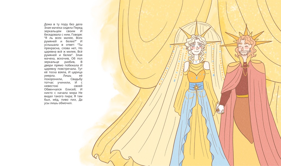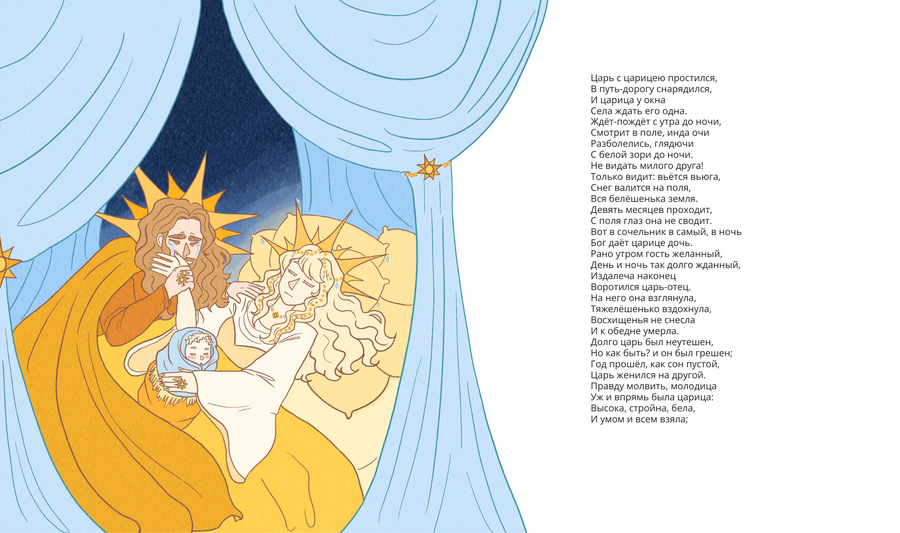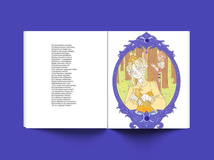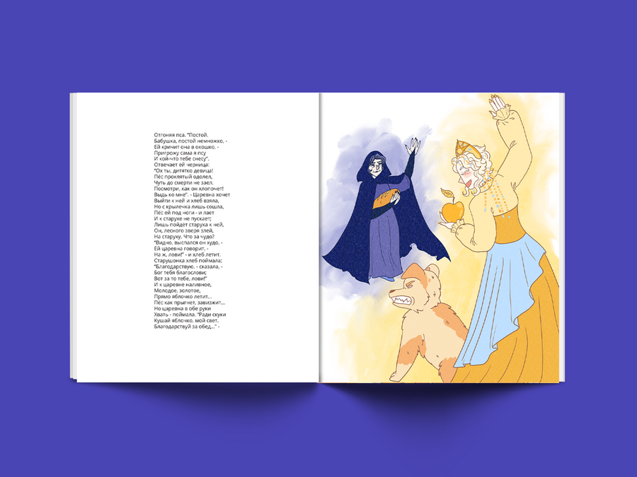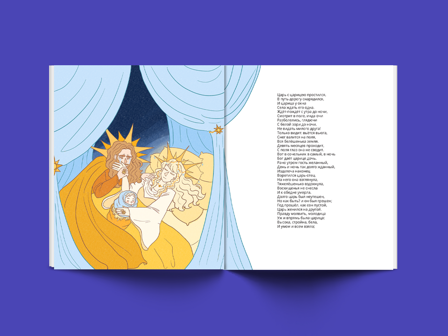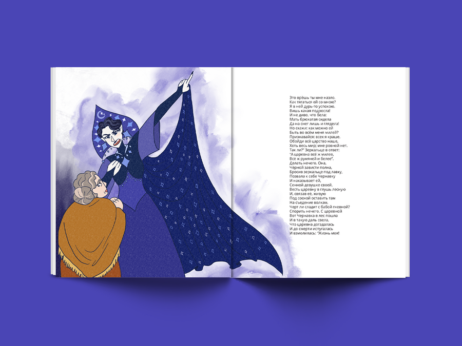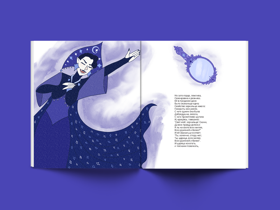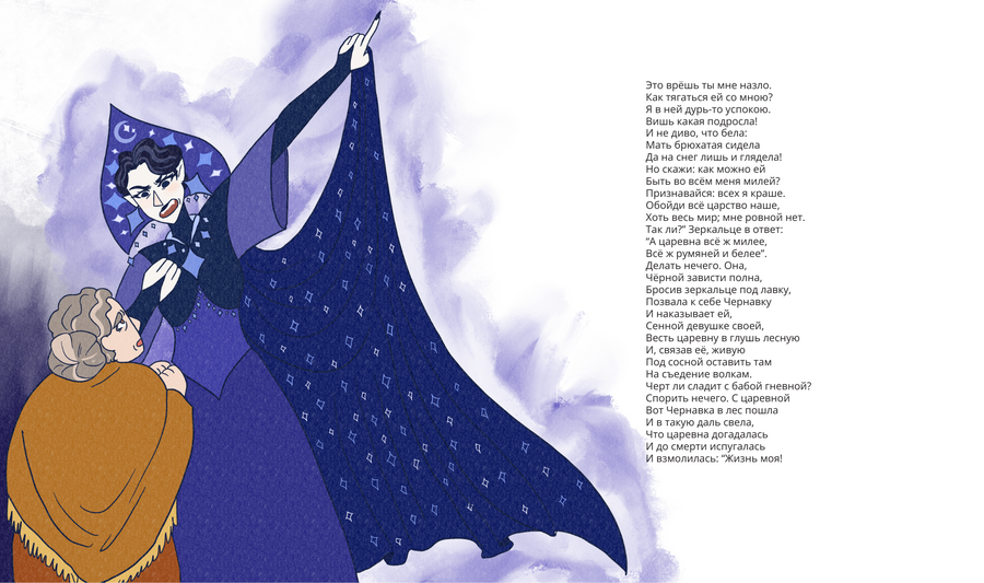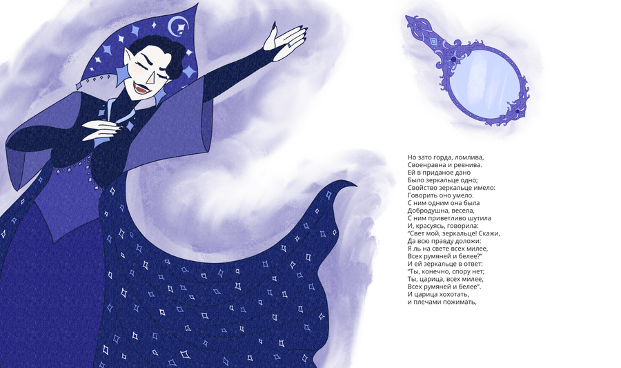 Данный проект является серией иллюстраций для сказки А. С. Пушкина, выполненной в современной и куда более волшебной, красочной и фэнтезийной атмосфере, чем мы привыкли видеть в иллюстрациях к таким сказкам, где Царевна и Царица являются полными противоположностями из солнечного царства и царства ночи
