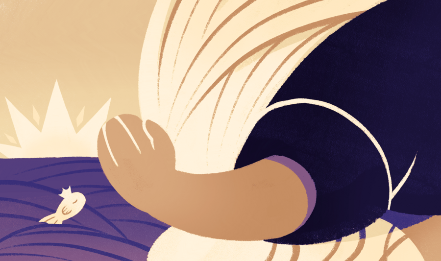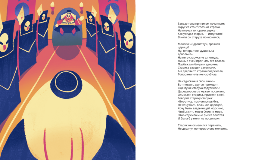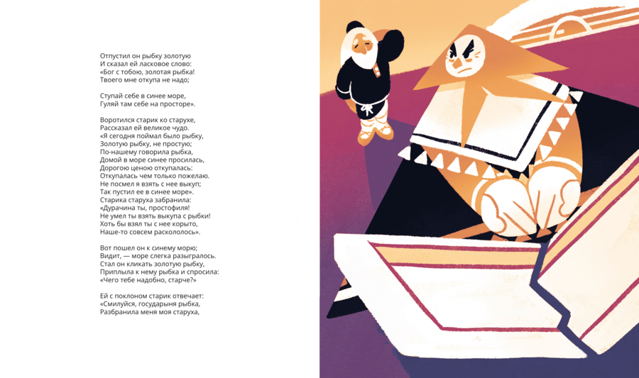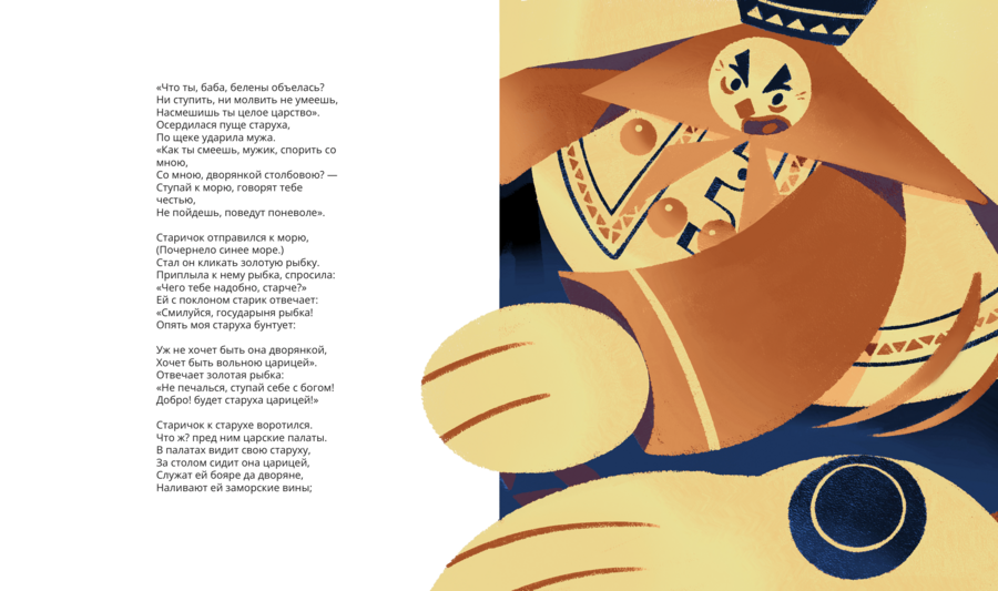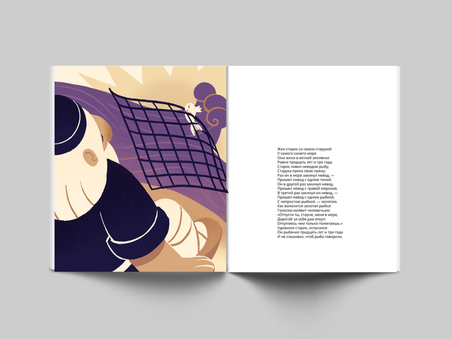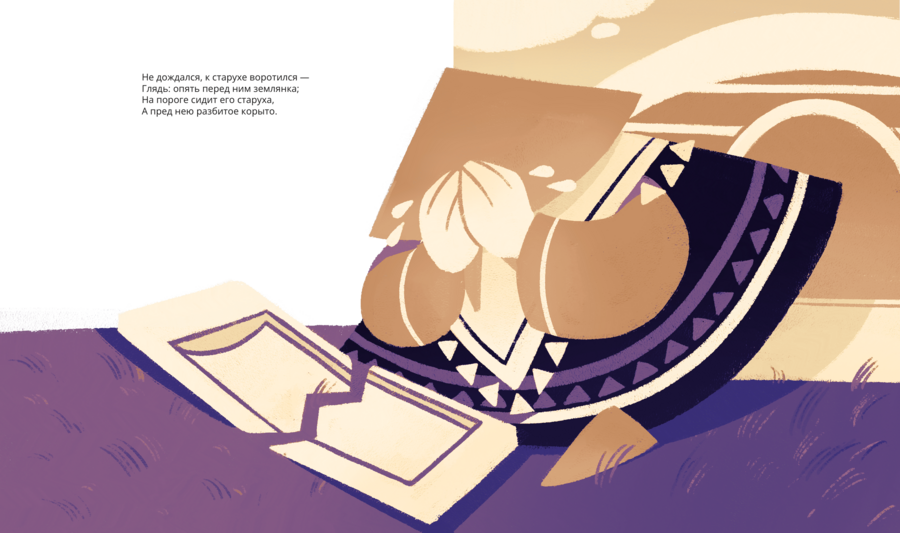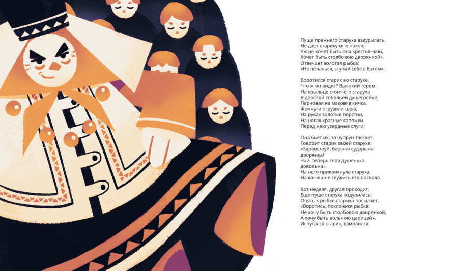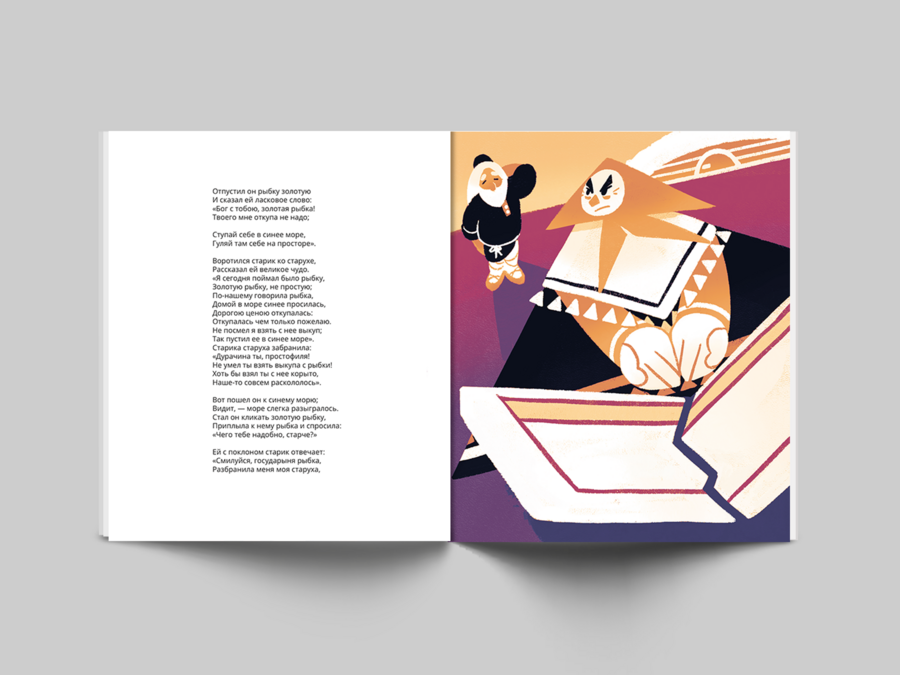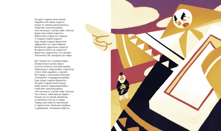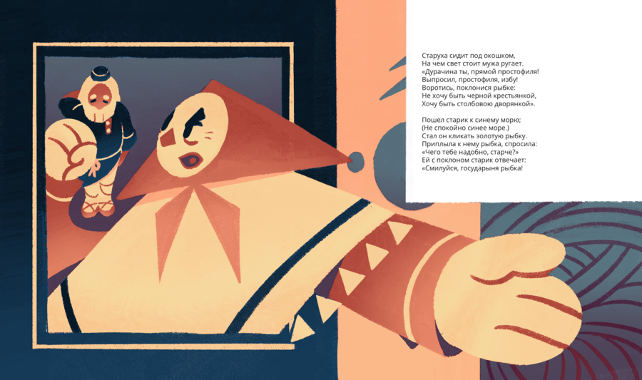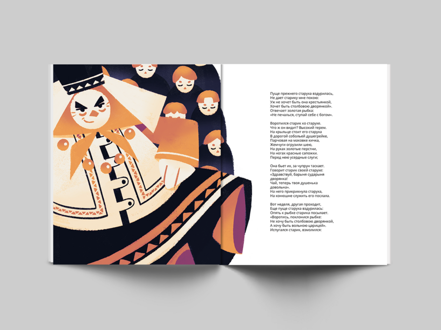 В моей интерпретации сказки, я акцентировала внимание на стилизации и передачу характеров персонажей через формы.
