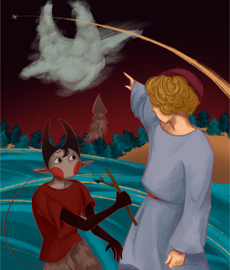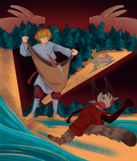 В своей интерпретации я хотела сделать иллюстрации атмосферными, при этом похожими на комикс без текста — в пространствах нет конкретики, и есть кадрирование, что добавляет динамики работе