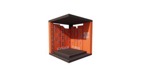 Стенд представляет собой ряд фасадов зданий разной высоты. У каждого здания есть окна нестандартного размера, все для того, чтобы уместить в себя ассоциации с творчеством журнала, например, вырезки из журналов, статуэтки и так далее. Это отражает идею о том, жизнь мегаполиса рождается в его «ячейках» и о том, что журнал освещает эти истории изнутри.