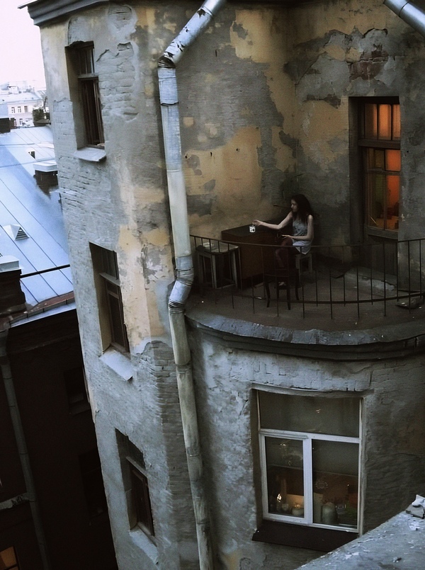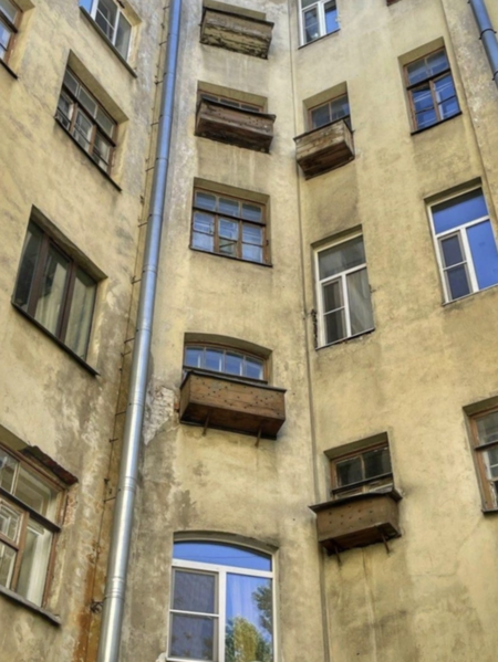 Однако, будучи закрытыми и сырыми, дворы также порождают чувство глубокой городской изоляции. Они отражают желание человека уйти от чрезмерной рациональности и амбиций города, создавая «третье пространство» — между личной жизнью в квартире и официальной жизнью на улице. Дворы — места, где проявляется наиболее интимная и нефильтрованная ветхость, что делает их излюбленным объектом для фотографов, занятых фотопроектами «Ветхий Санкт-Петербург».