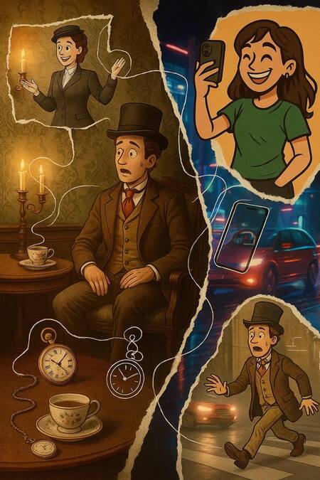 Через образы и визуальные эксперименты показывается, как культура и привычки разных времён вступают в диалог, создавая новые смыслы и неожиданные комические эффекты.