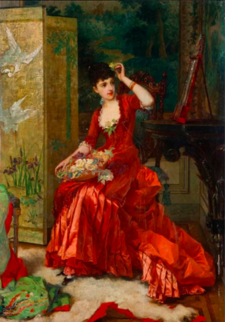 Girl with a Basket of Flowers [Электронный ресурс] / Frans Verhas // Fashion History. URL: https://fashionhistory.fitnyc.edu/1883-worth-red-dinner-dress (дата обращения: 21.12.2025).