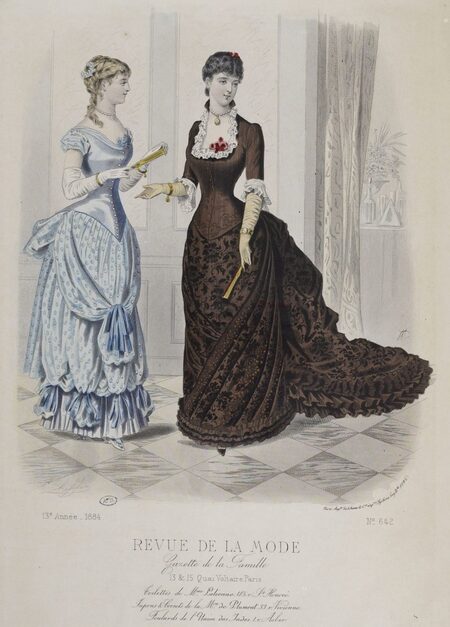 Illustration of models and outfits of the House of Worth by an unknown French artist for «Revue de la mode: Gazette de la Famille» [Электронный ресурс] // Fashion History. URL: https://fashionhistory.fitnyc.edu/1883-worth-red-dinner-dress (дата обращения: 21.12.2025).